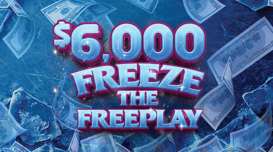 - 1 Winner every 30 minutes gets to play Freeze the Freeplay for a chance at up to $1,000 Freeplay