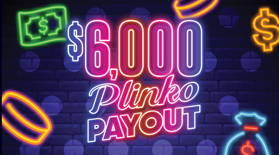 - 1 Winner every 30 minutes gets to play PLINKO for a chance up to $1,000 Freeplay